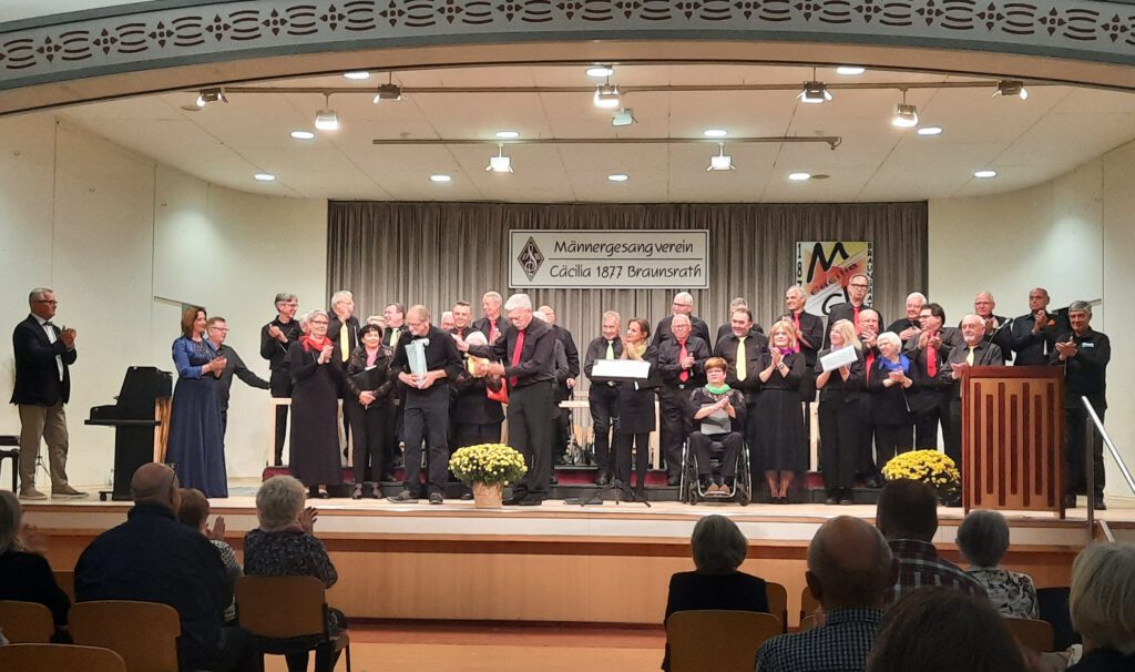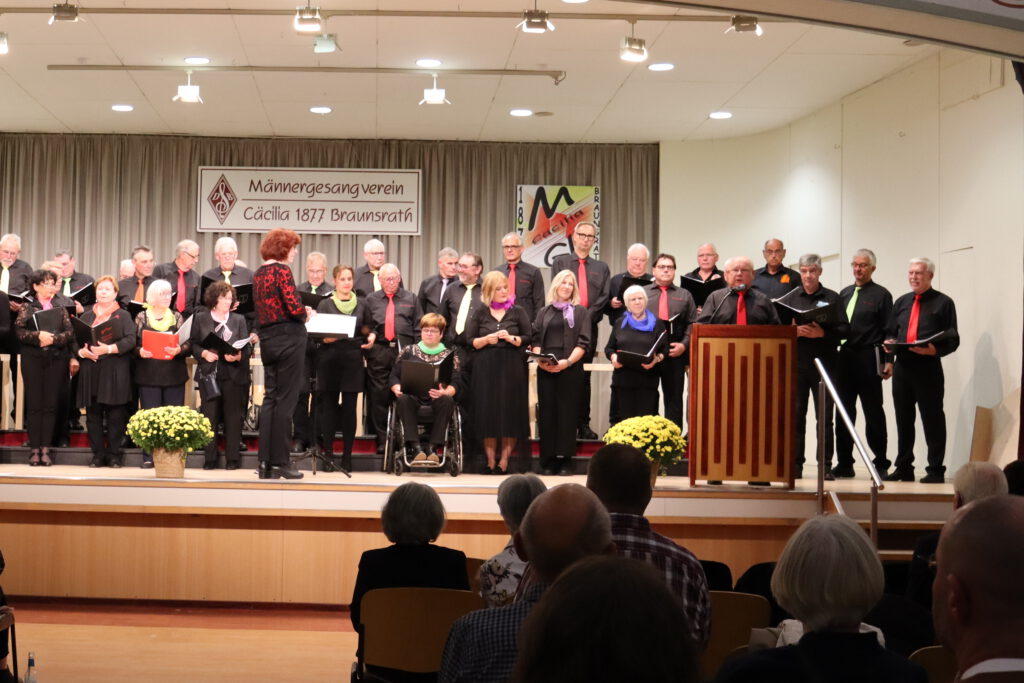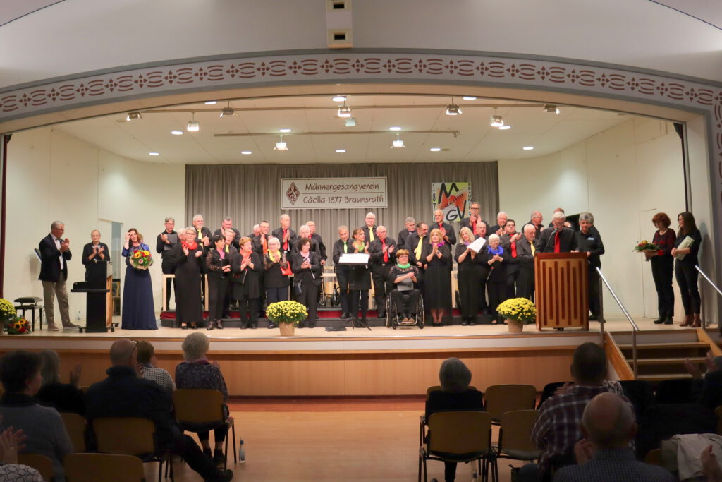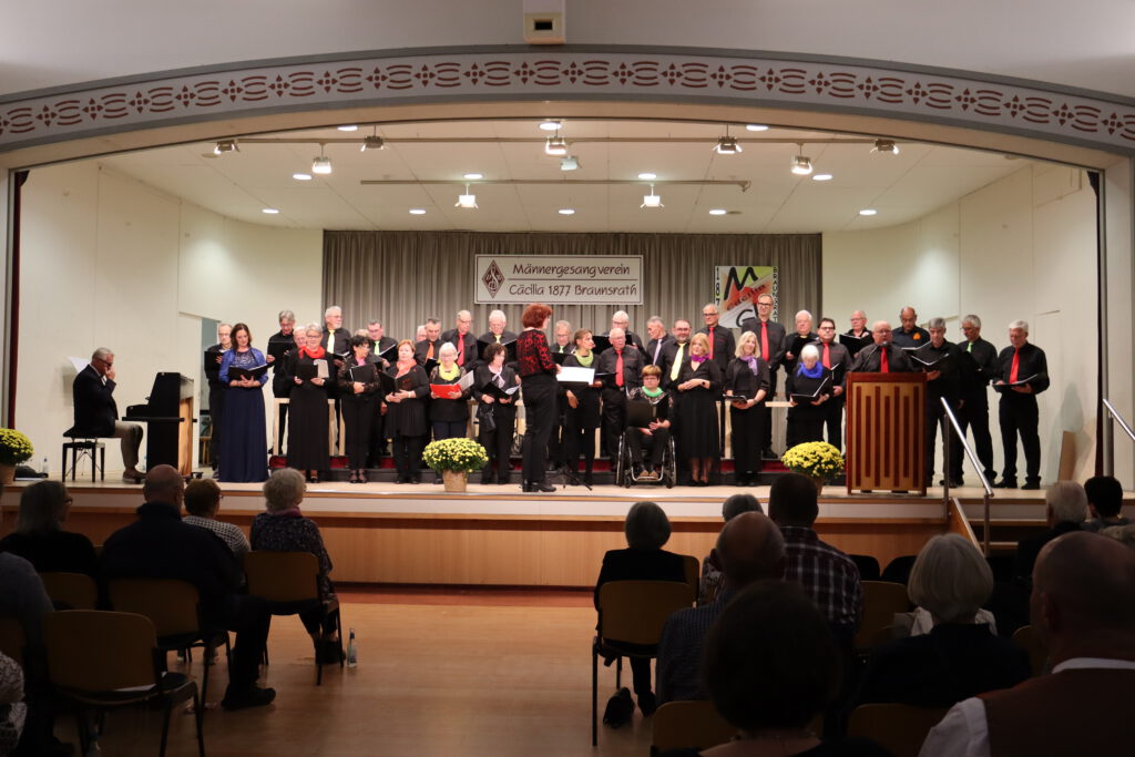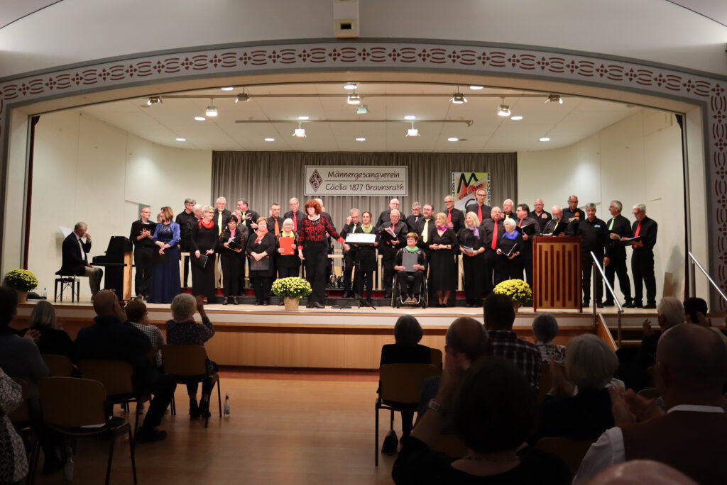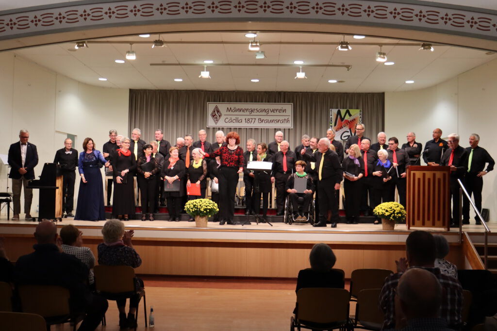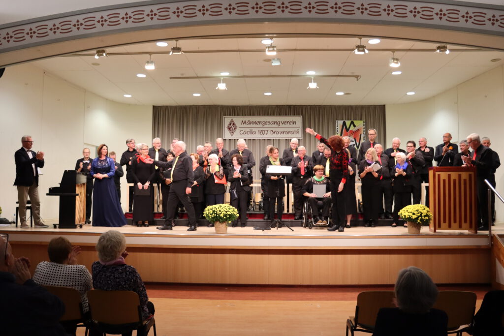 Es war ein Konzert, wie es Tradition hat in Braunsrath – und doch war es auch dieses Mal wieder eines, wofür der Männergesangsverein Cäcilia sich wieder so einiges hatte einfallen lassen. Dazu gehörten nicht die Begrüßung durch den Vorsitzenden Bernd Geldmacher oder die humorvolle Moderation von Franz Grefen, über die sich das Publikum in der gut besetzten Festhalle freute. Neu war die Gesangssolistin Lien Haegeman, die schon im zweiten Lied des Chores für eine Überraschung sorgte, als sie, im Programm gar nicht angekündigt, im gleichnamigen Lied als Lili Marleen auftrat.
